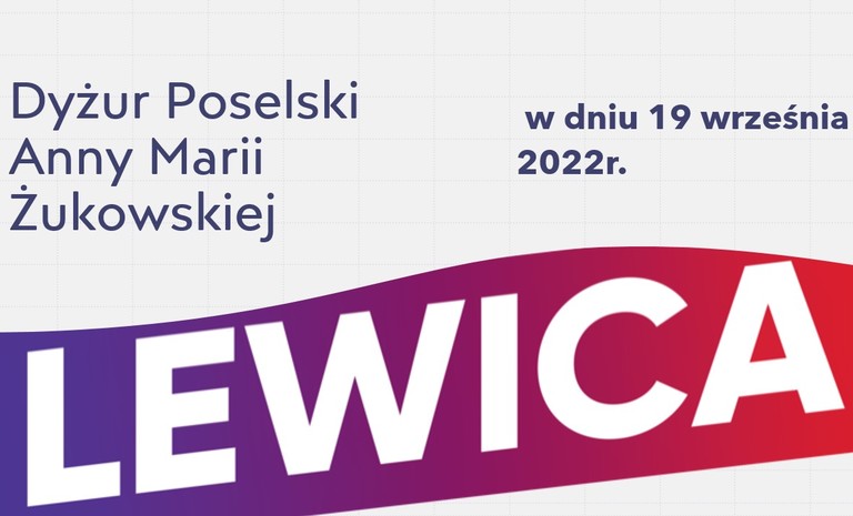 Posłanka na Sejm RP Anna Maria Żukowska zaprasza na dyżur poselski, któ...
